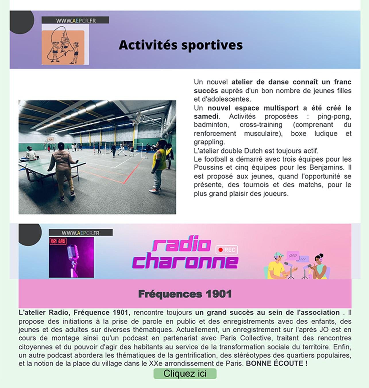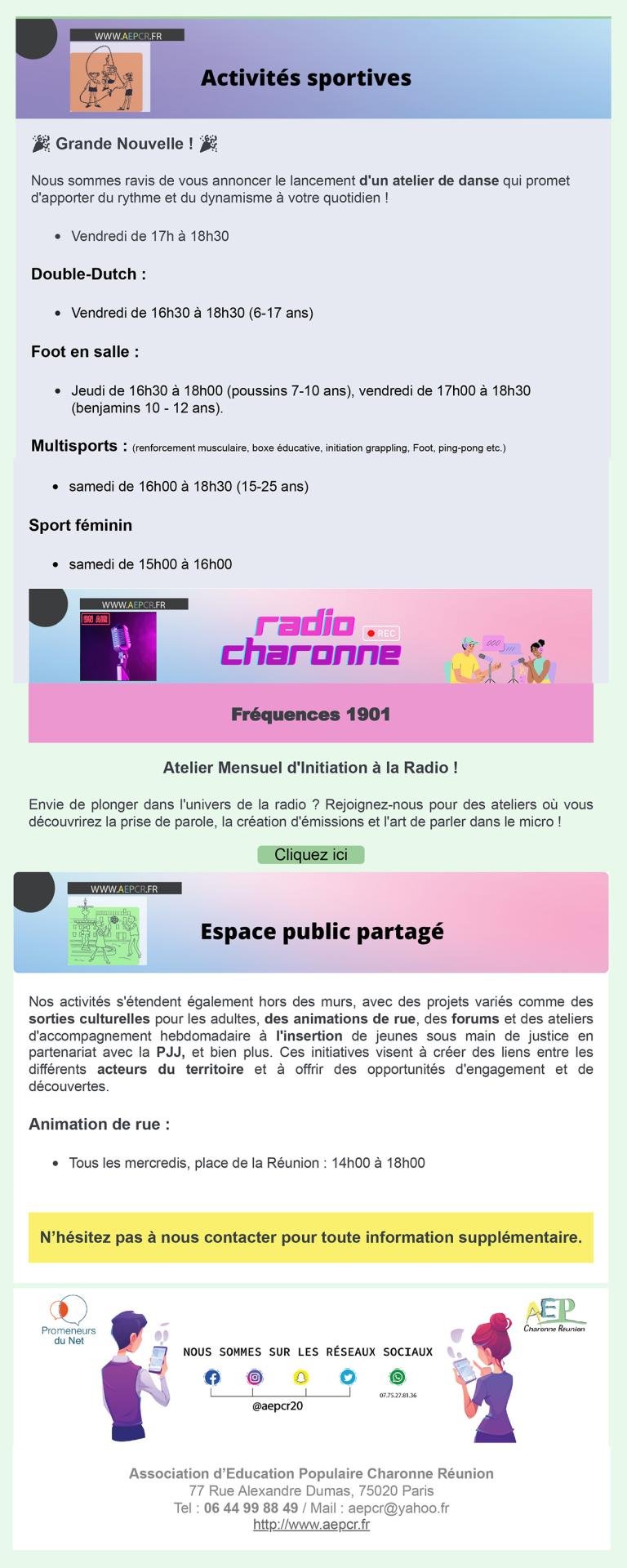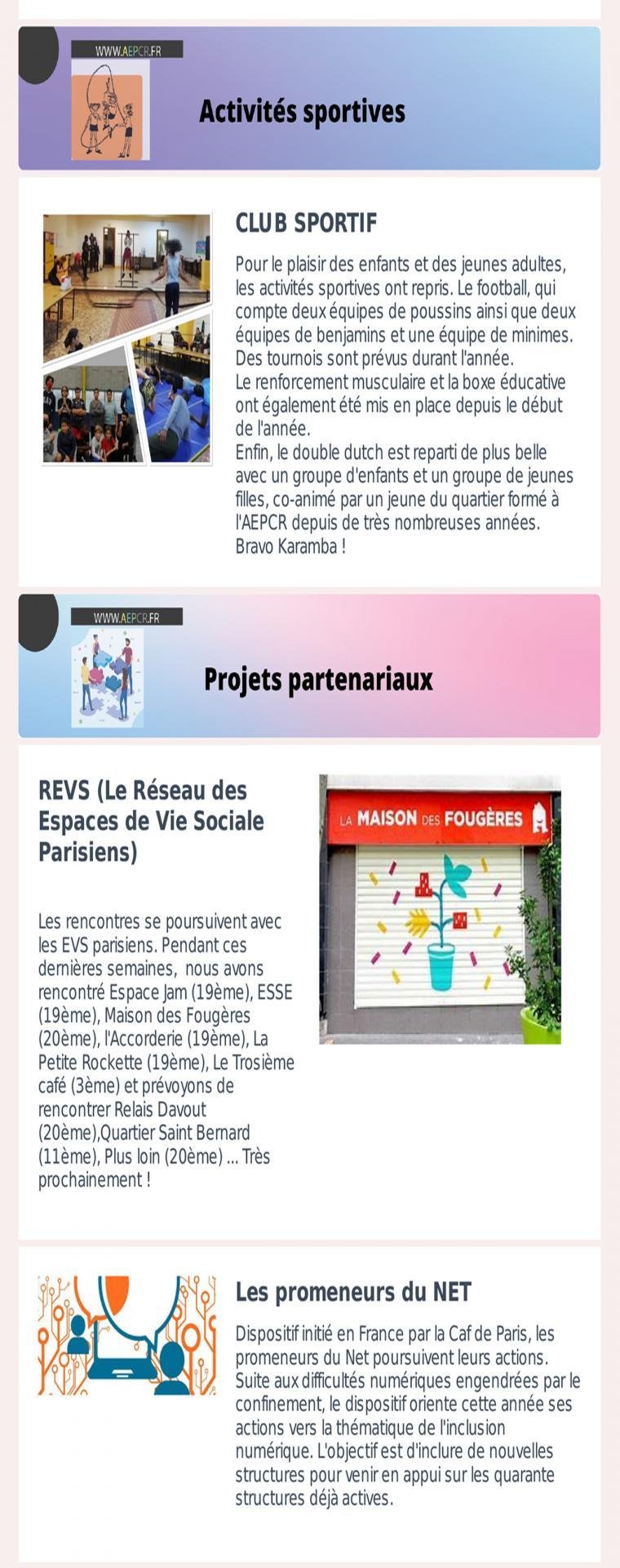 - Avril / Mai / Juin – Activités sportives, Espace numérique et Projets partenariaux