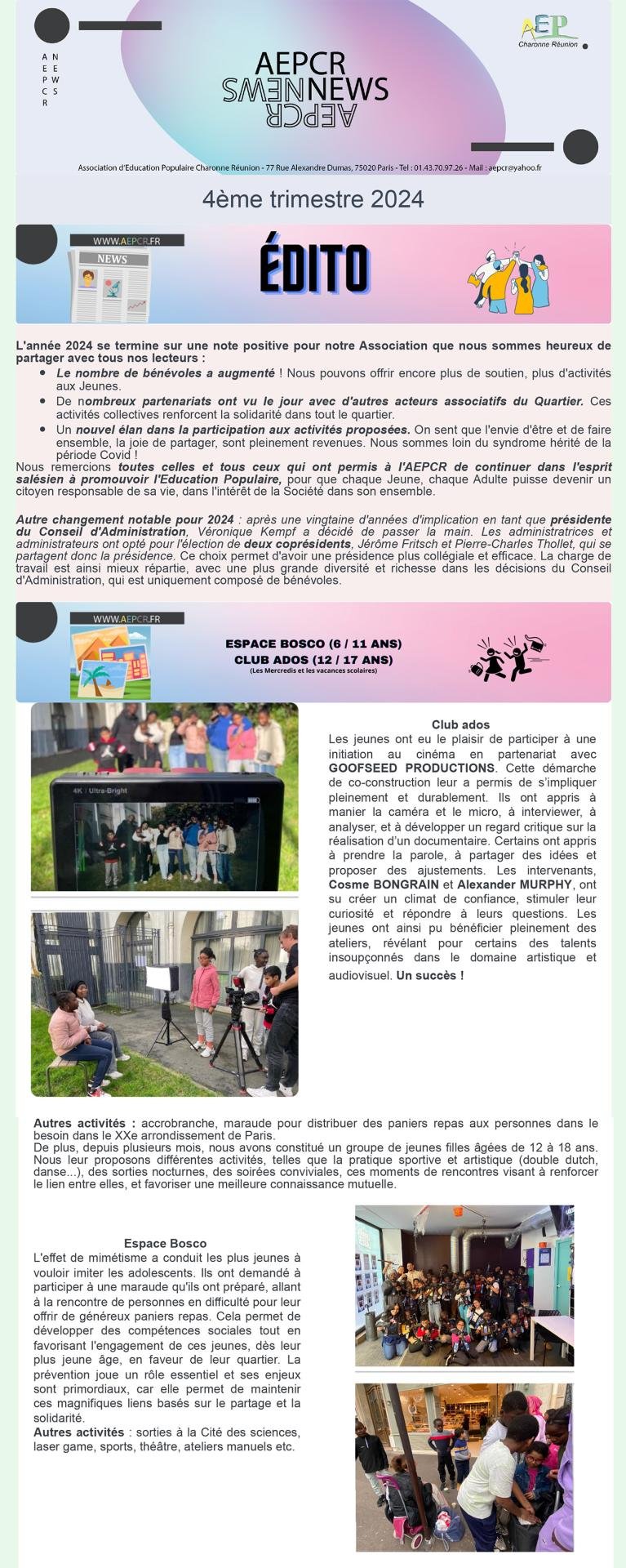 - 4ème trimestre – Espace Bosco et Club ados