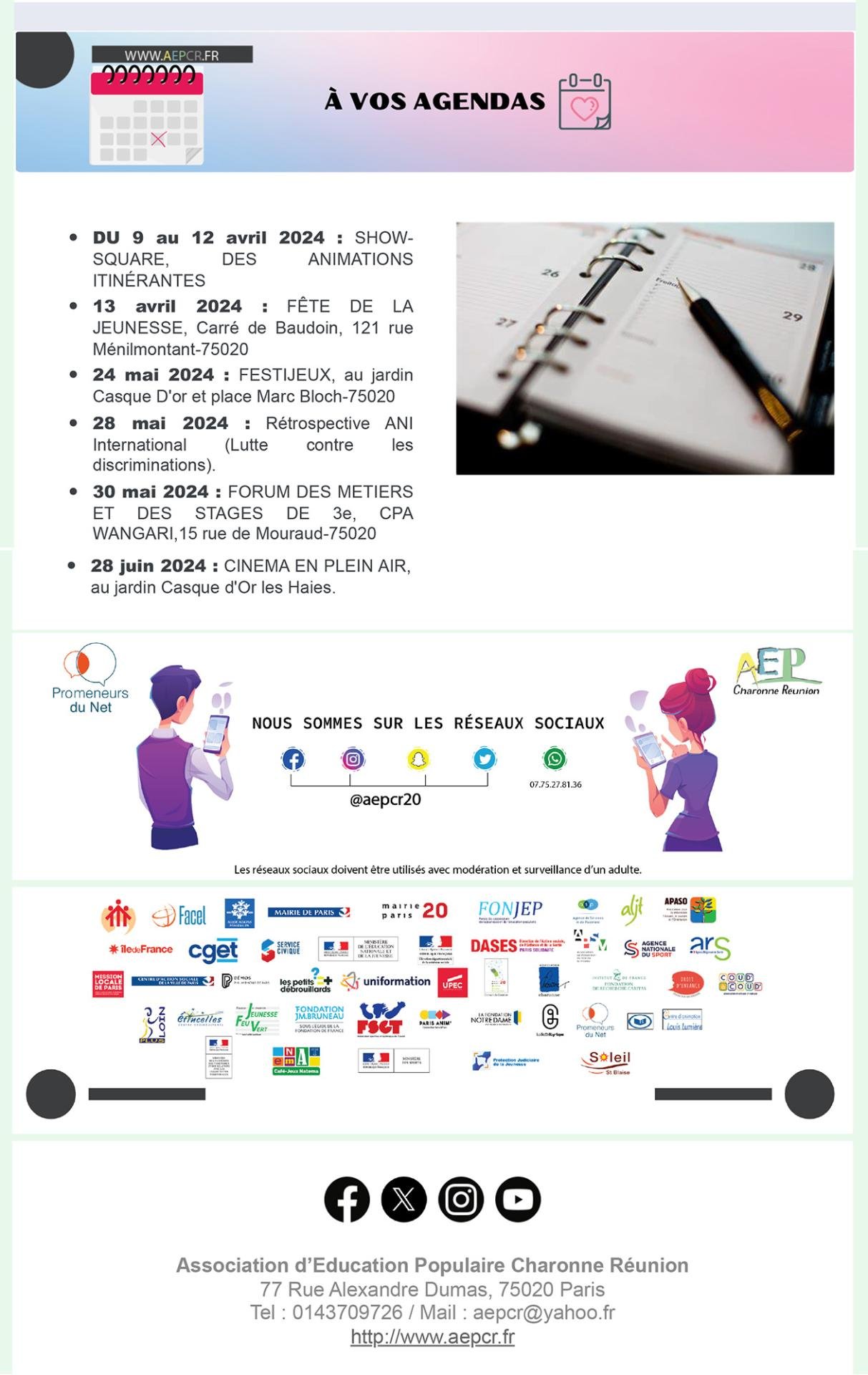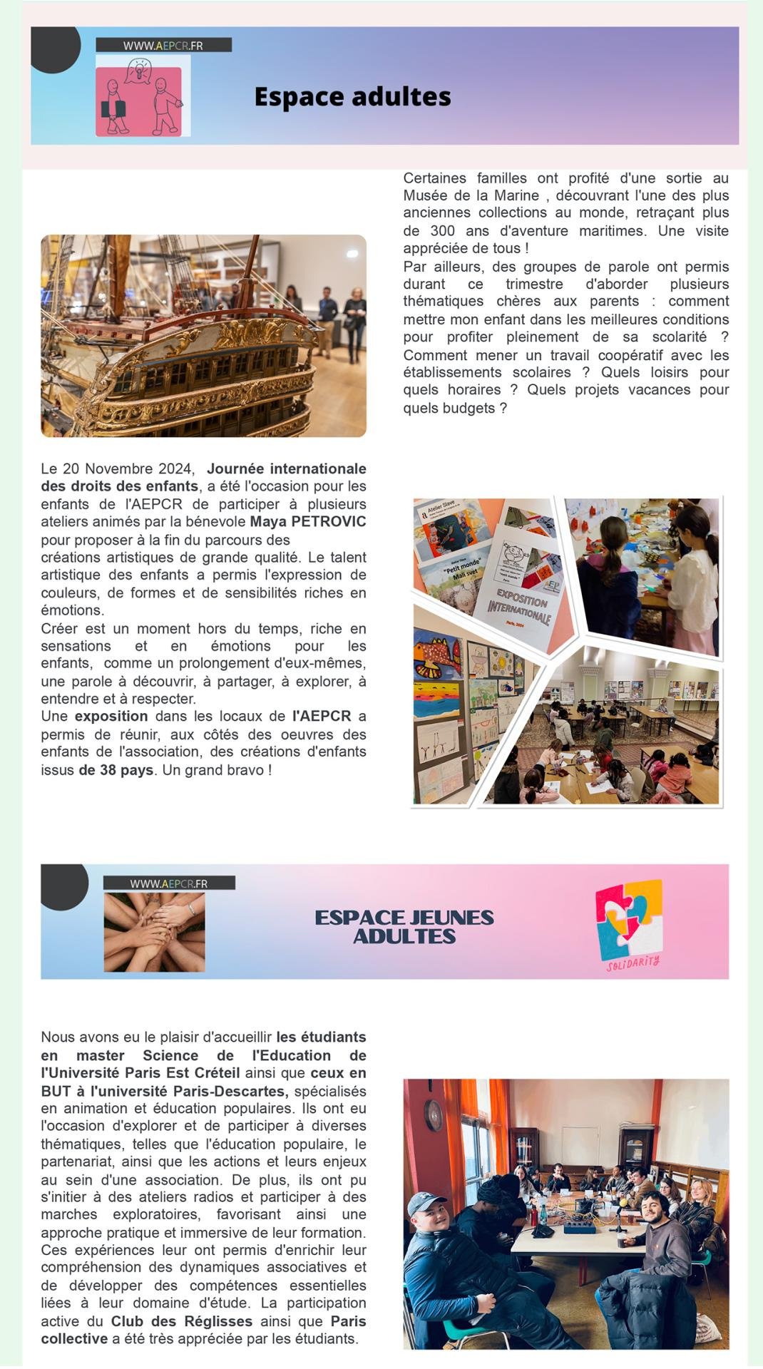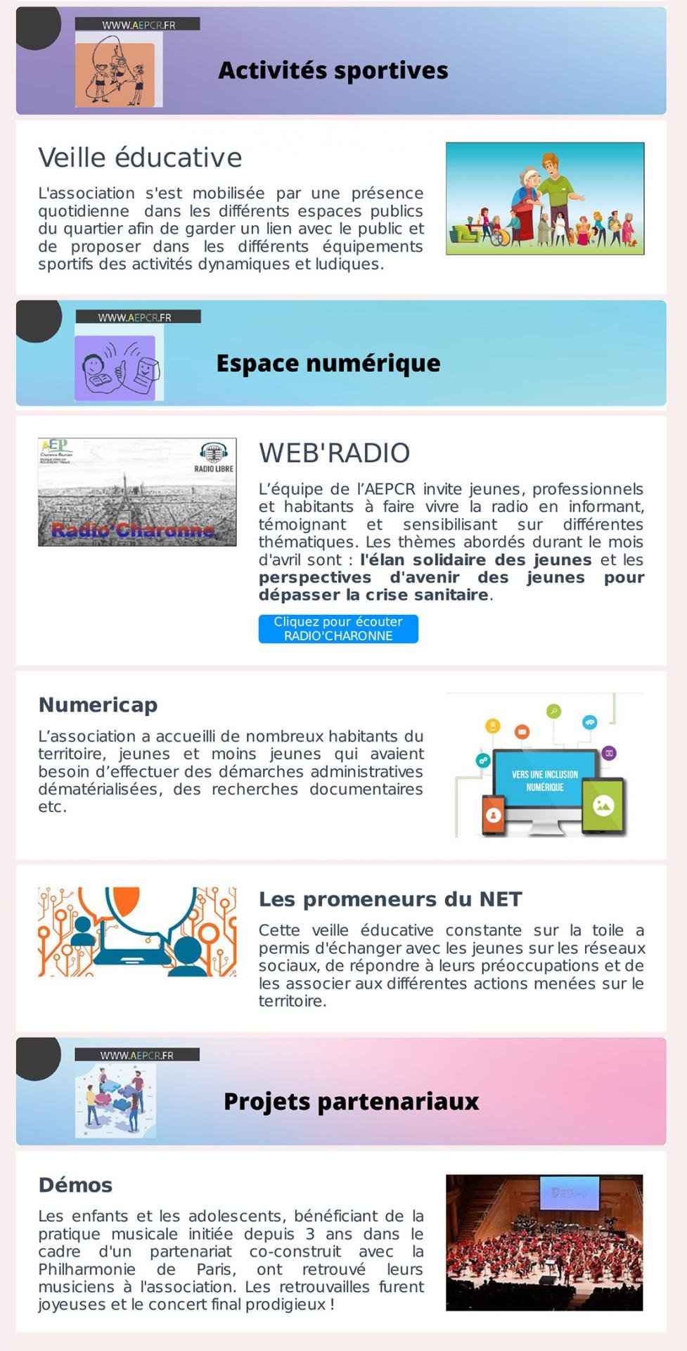 - Avril / Mai / Juin – Accompagnement à la scolarité et Espace adultes