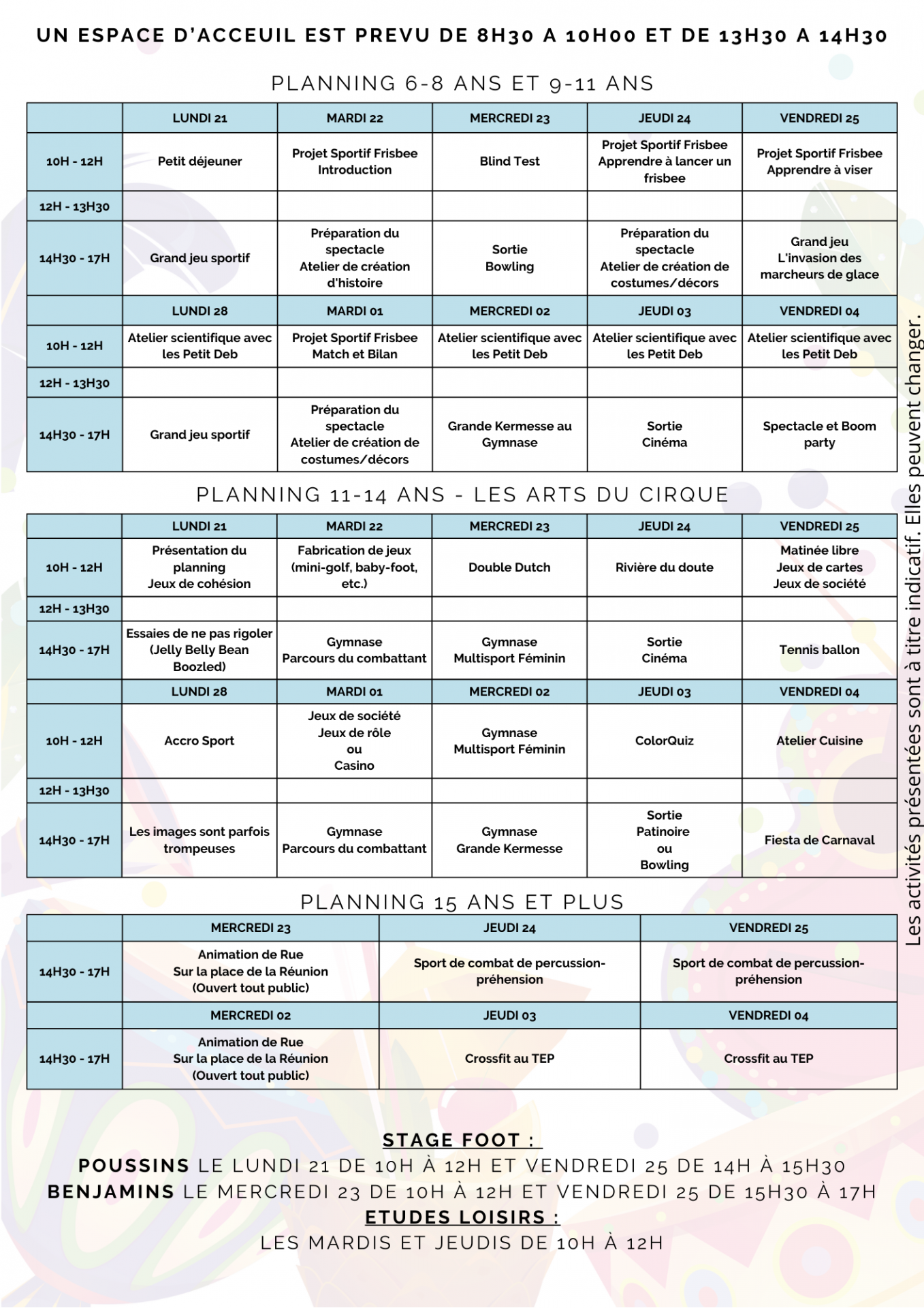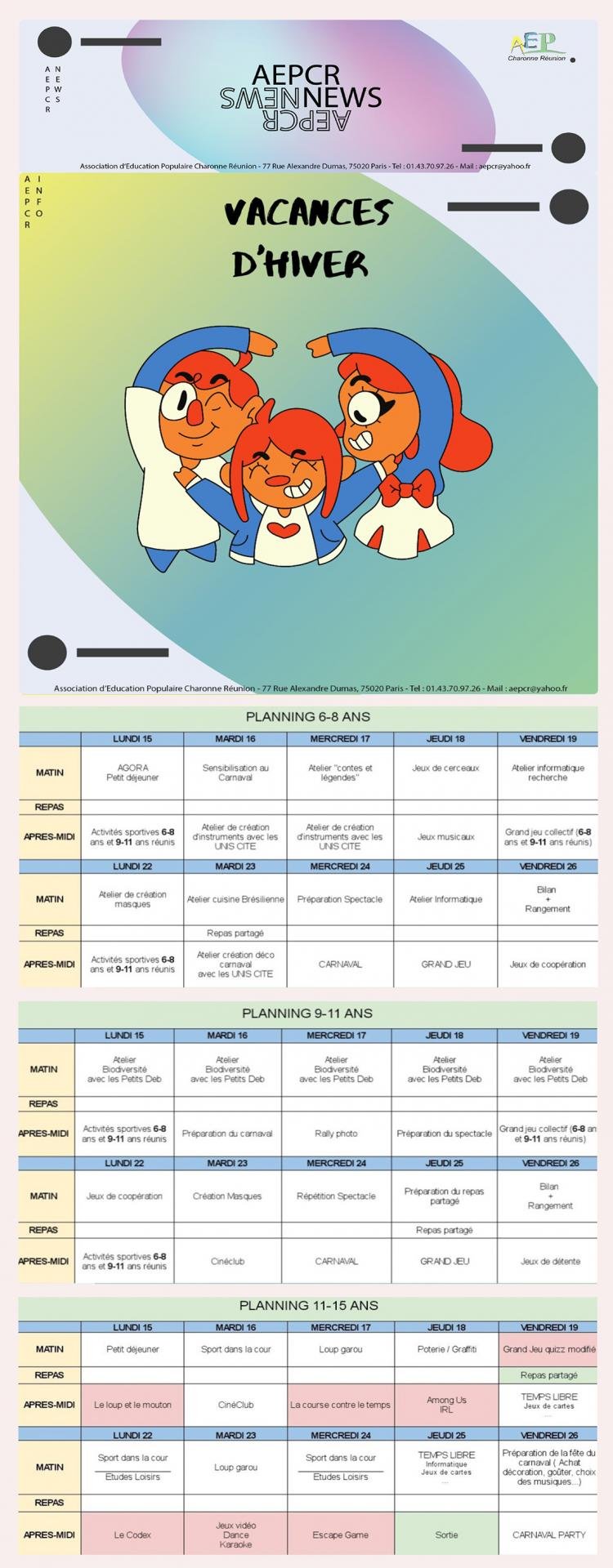 - Vacances de Février – Planning