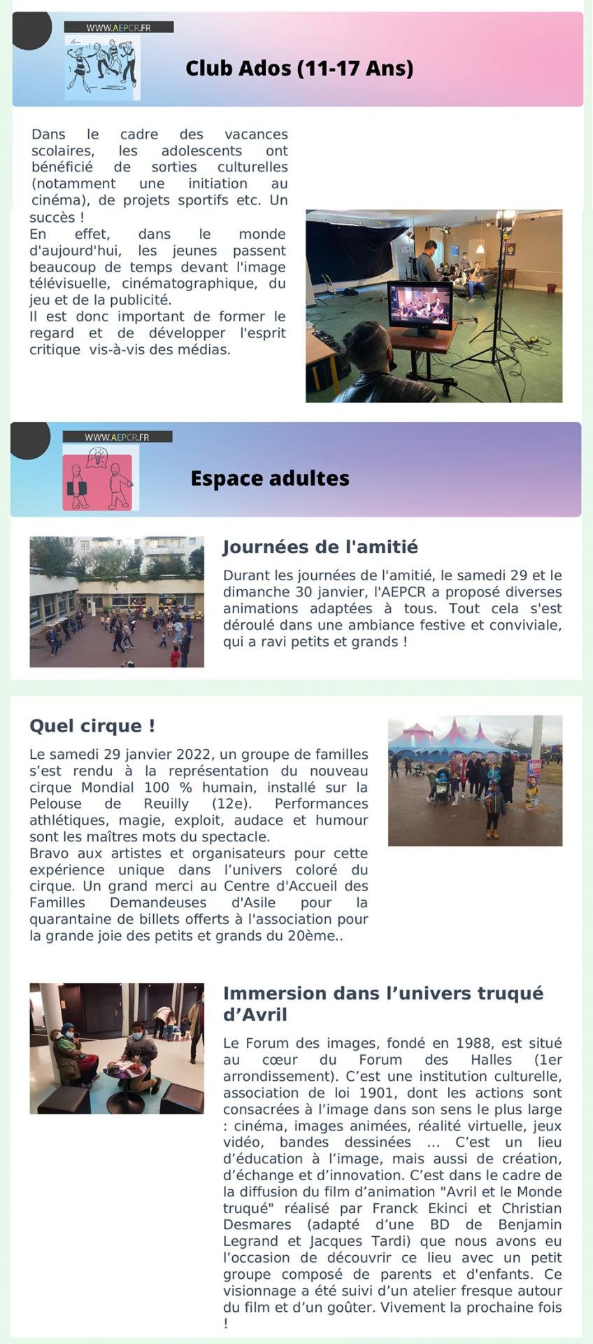 - Janvier / Février – Club ados et Espace adultes