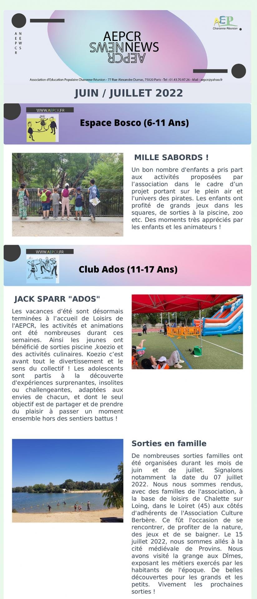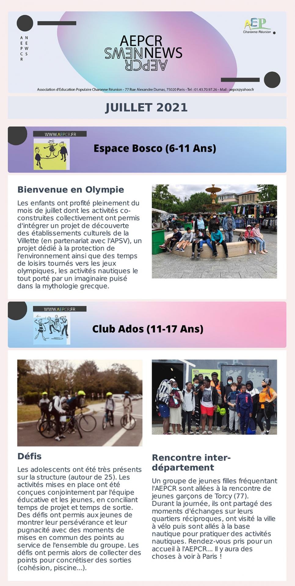 - Juillet – Espace Bosco et Club ados