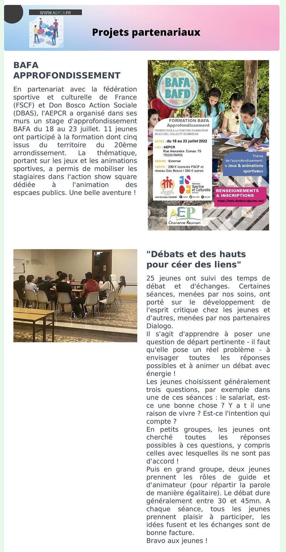 - Juillet – Engagement, Bénévolat, Citoyenneté et Projets partenariaux