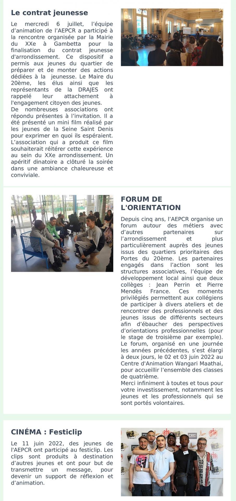 - Juin – Projets partenariaux suite et Club ados