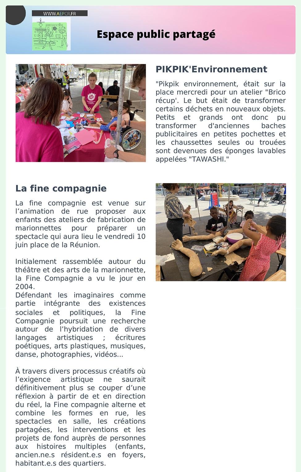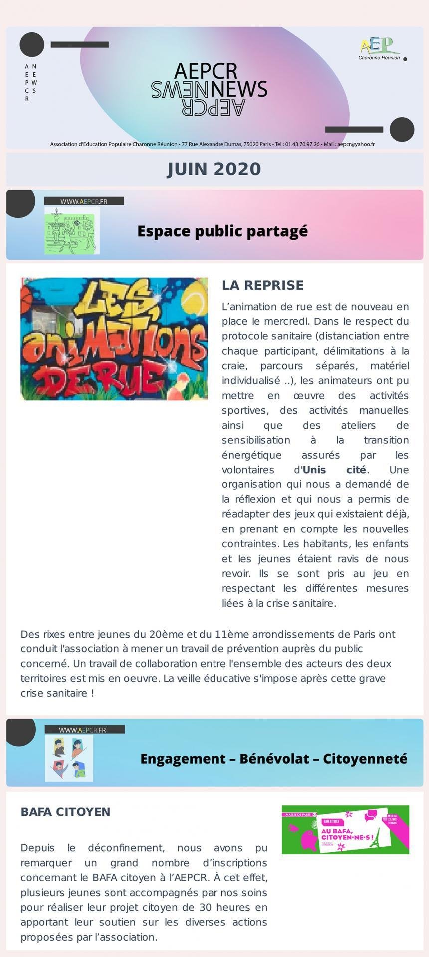 - Juin – Espace public partagé et Engagement, Bénévolat, Citoyenneté