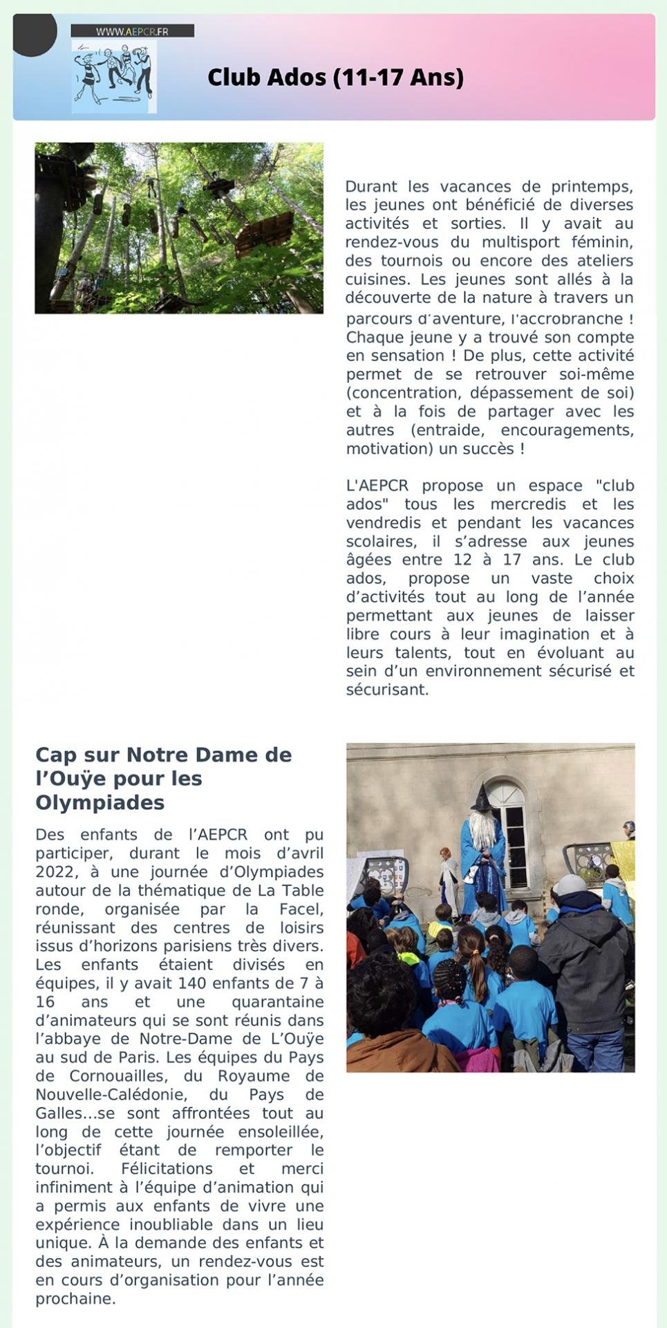 - Mars / Avril / Mai – Club ados