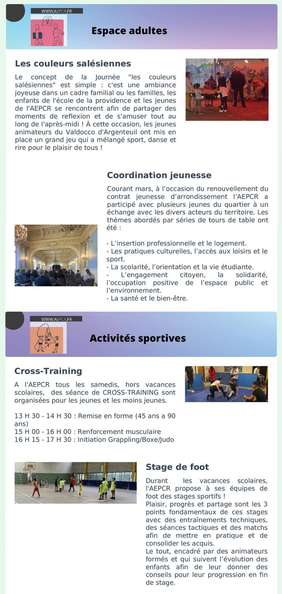 - Mars / Avril / Mai – Espace adultes et Activités sportives