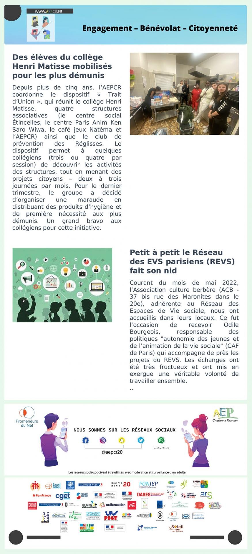 - Janvier / Février – Projets partenariaux et Engagement, Bénévolat et Citoyenneté