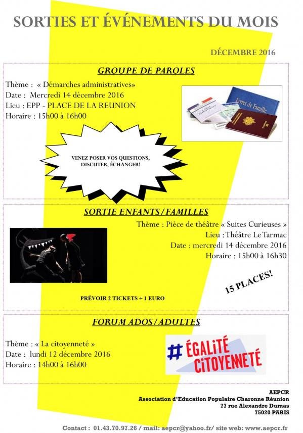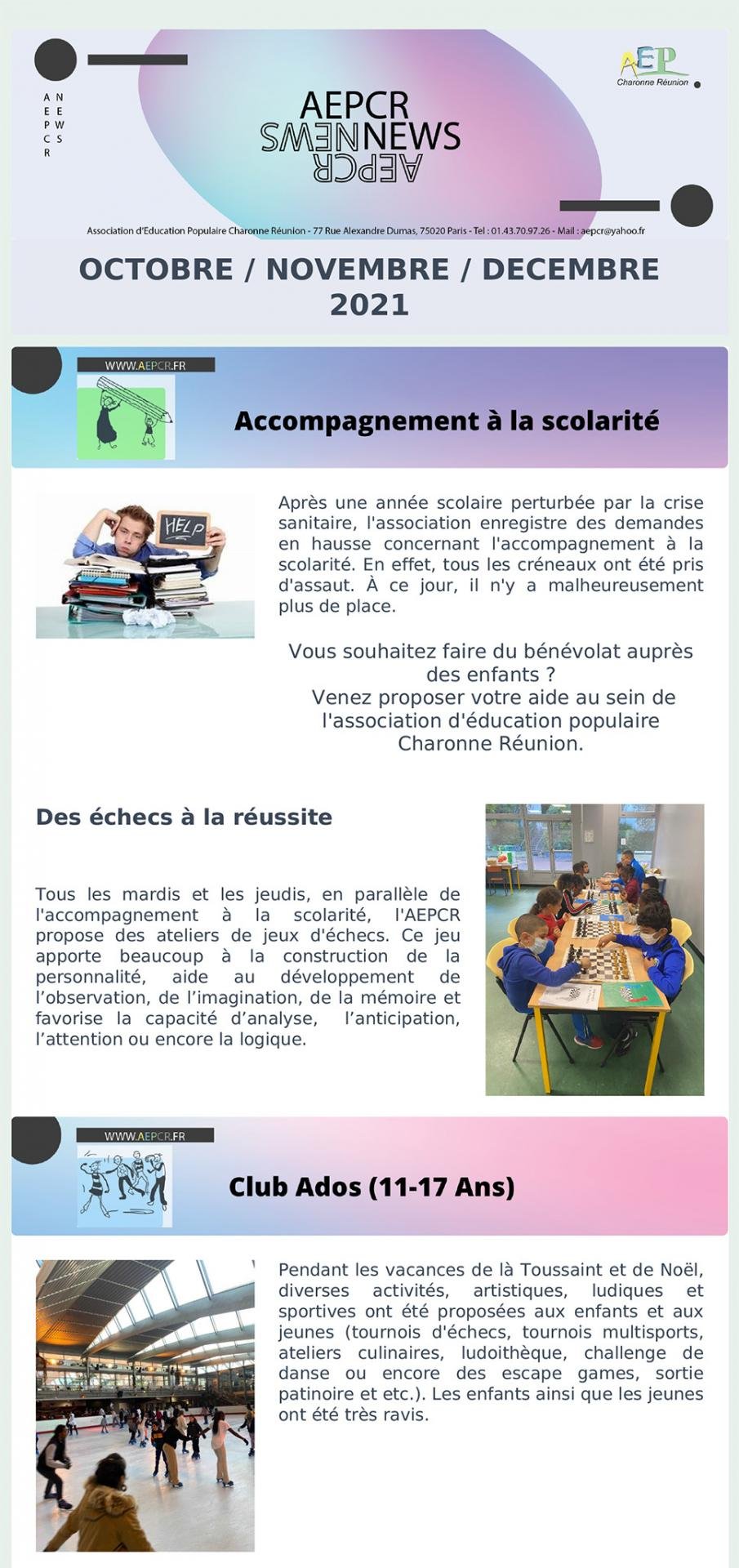 - Octobre / Novembre / Décembre – Accompagnement à la scolarité et Club ados