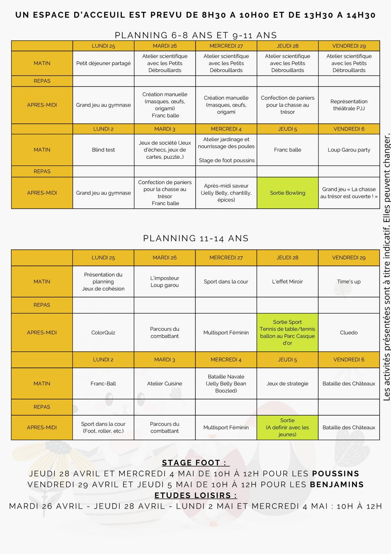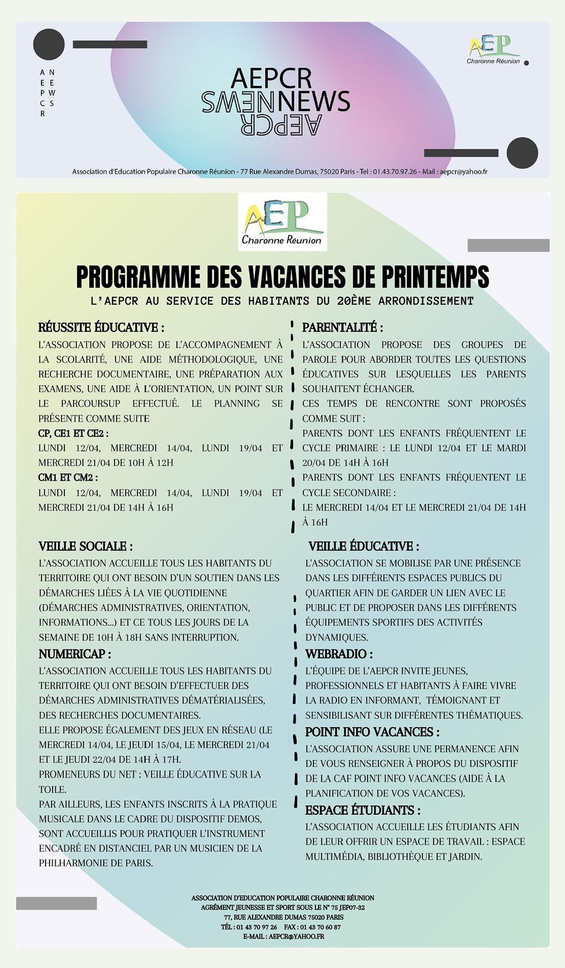 - Vacances printemps – Programme