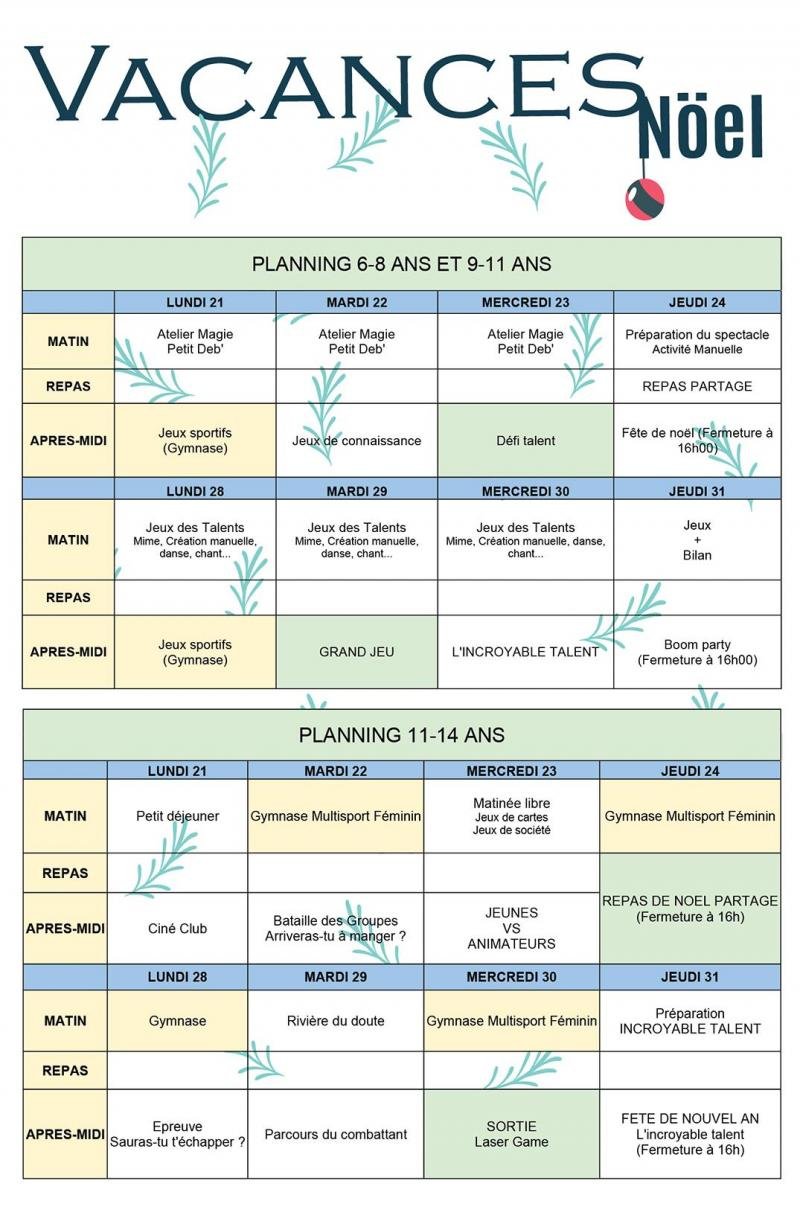 - Vacances de Noël – Planning