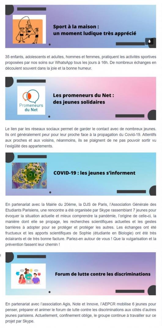 - Mars – Sport à la maison, Les promeneurs du Net, Covid-19 et Forum de lutte contre les discriminations