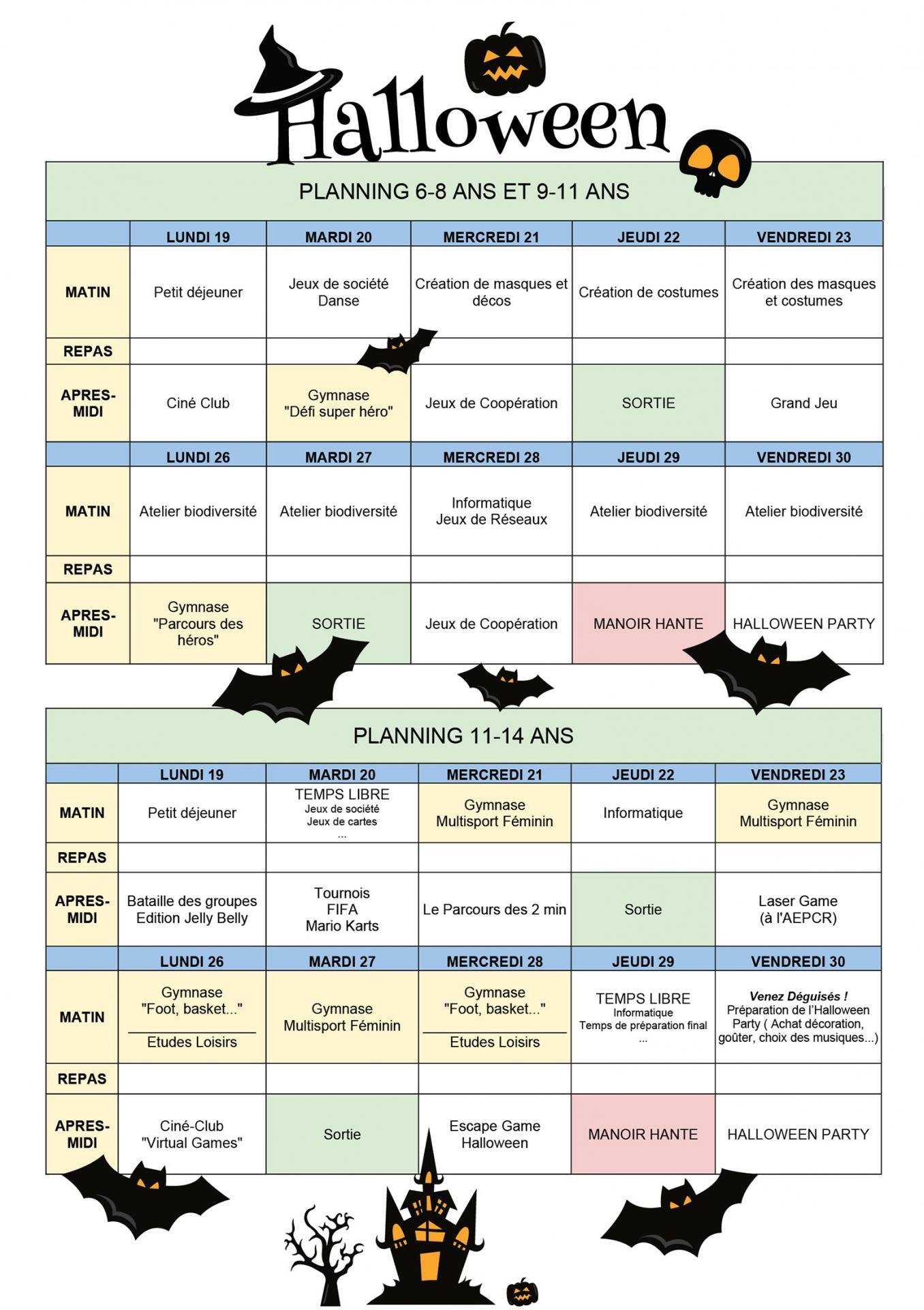 - Vacances de la Toussaint – Planning