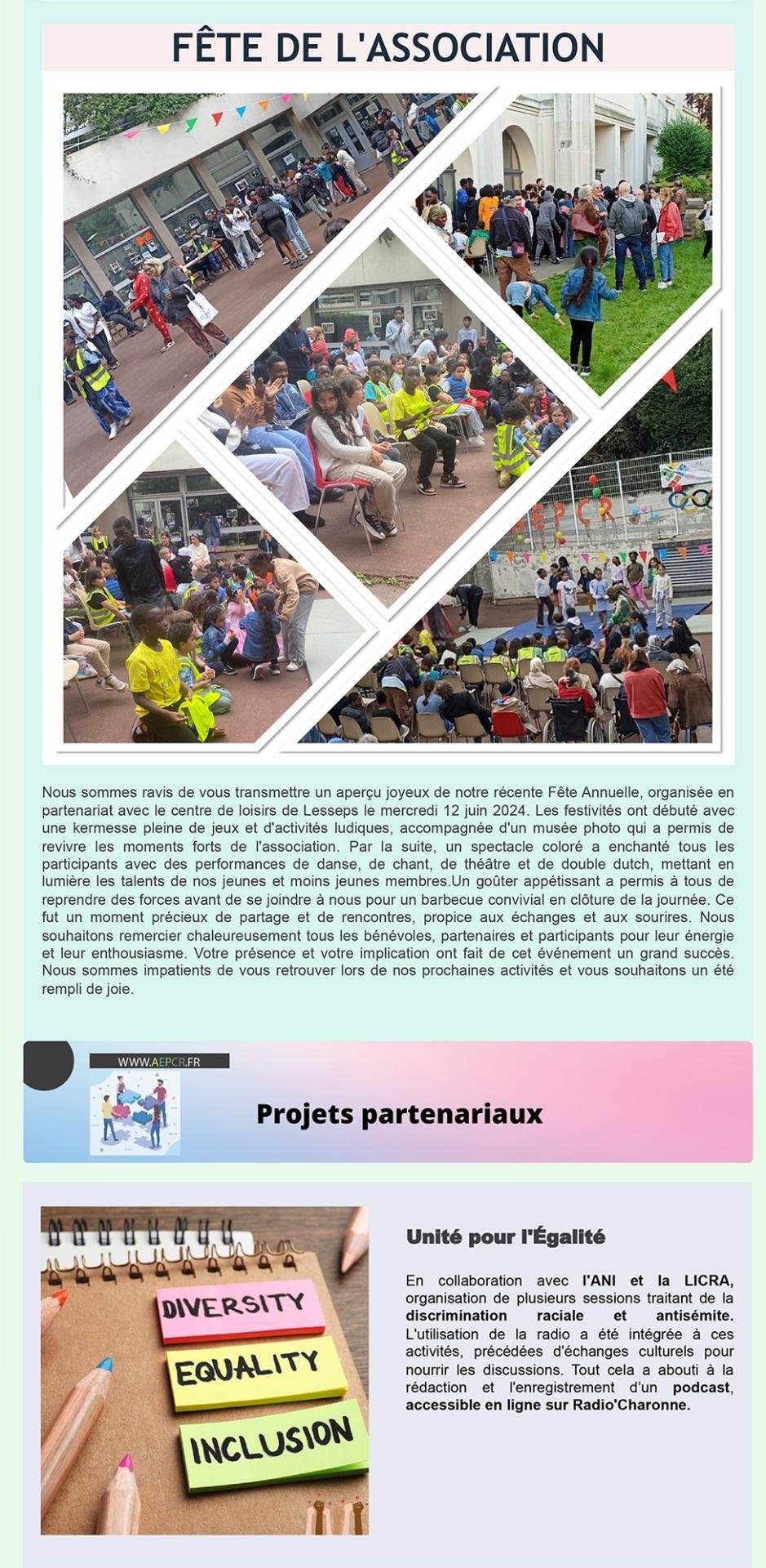 - 2ème trimestre – Fête de l’association et projets partenariaux