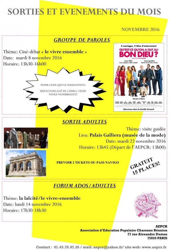 - Novembre – Hors les murs